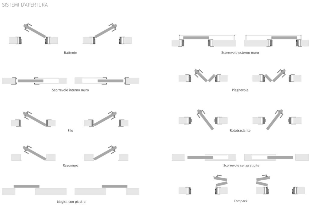 - Ampia scelta di soluzioni: battente, scorrevoli, a libro o filo muro